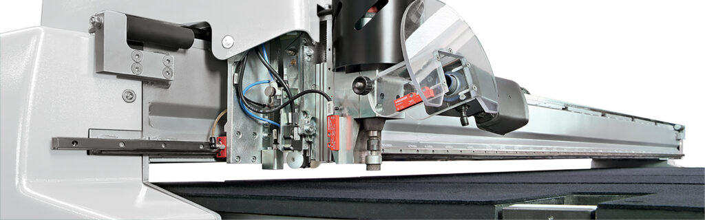 Cutting, grinding and marking table fully integrated with manual or automatic loading and breakout modules, intended for applications requiring high productivity. The 343 BCS cutting table is fixed and complete with belt conveyor, automatic selection of cutting pressures, Shape Scanner + Scan Cad, optimiser on the machine and BCMS Windows.