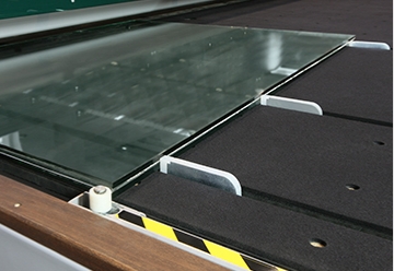 The positioning bridge, manual for 511LAM-S and automatic for 515LAMe and 520LAMe, helps the glass handling operations. The high density felt guarantees the best air floatation and avoids that glass chips get stuck inside with consequent potential scratching on the lower surface of glass sheets