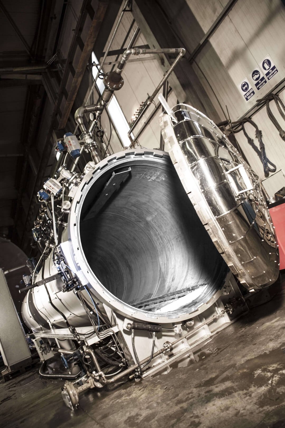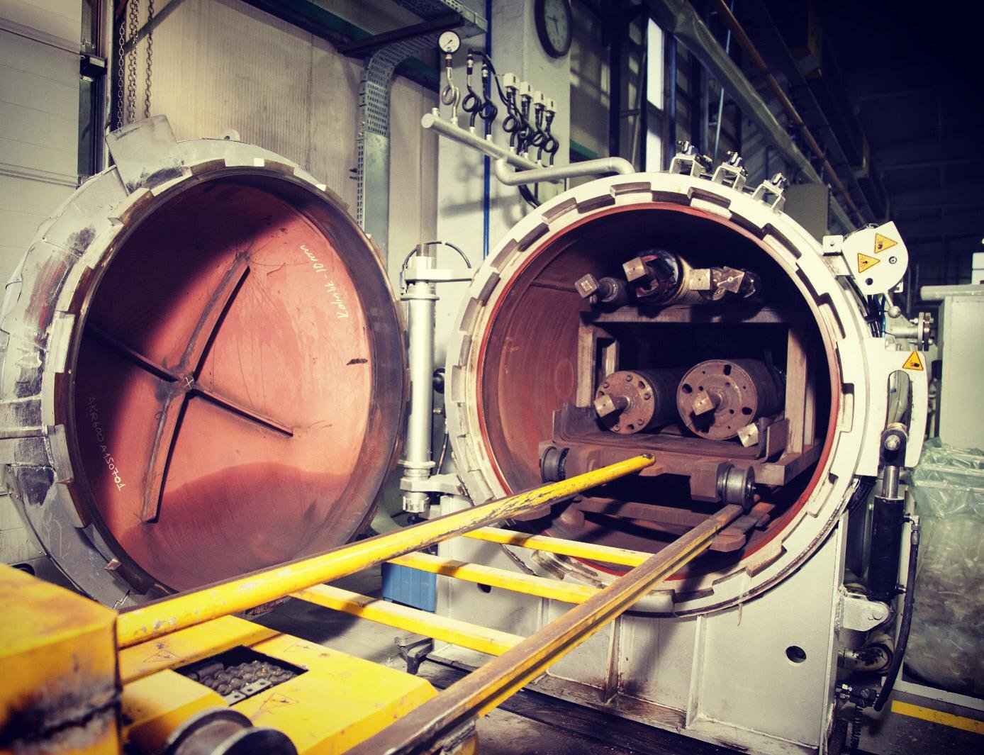 Akarmak rubber curing autoclaves are also used in applications involving rubber hose, component production, printing rubber roller and rubber-coated roller manufacturing. Depending on the process, the autoclaves can be offered with direct steam or hot air heating systems. The autoclave sizes can go up to 5.5 meters in diameter and vary in length for different uses.