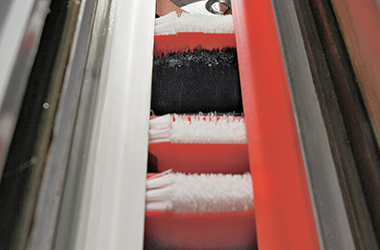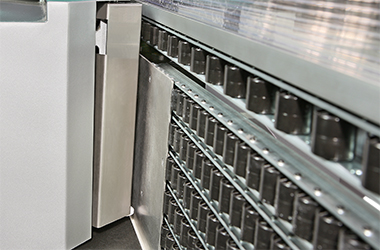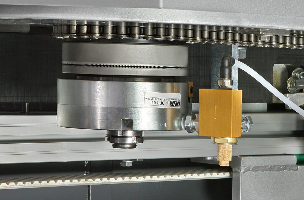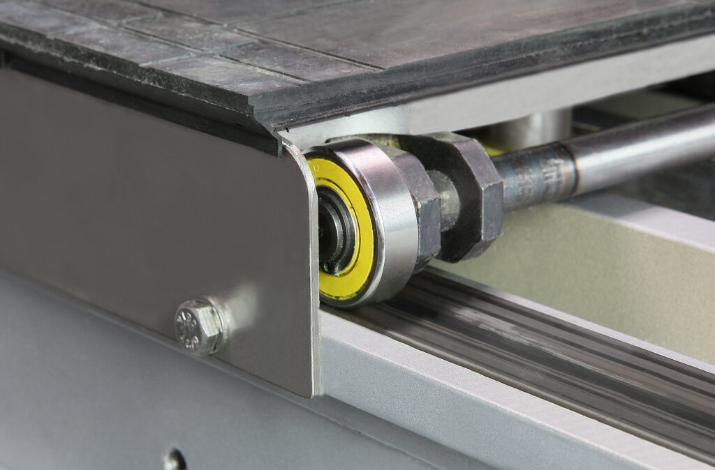 The sliding guides of the slide blocks are made of extremely hard alloy steel. This material allows the bearings, fully built in stainless steel, to slide perfectly and the system to last for a long time. The guides and bearings of the slide blocks are protected by a labyrinth seal system to prevent infiltration of the grinding water